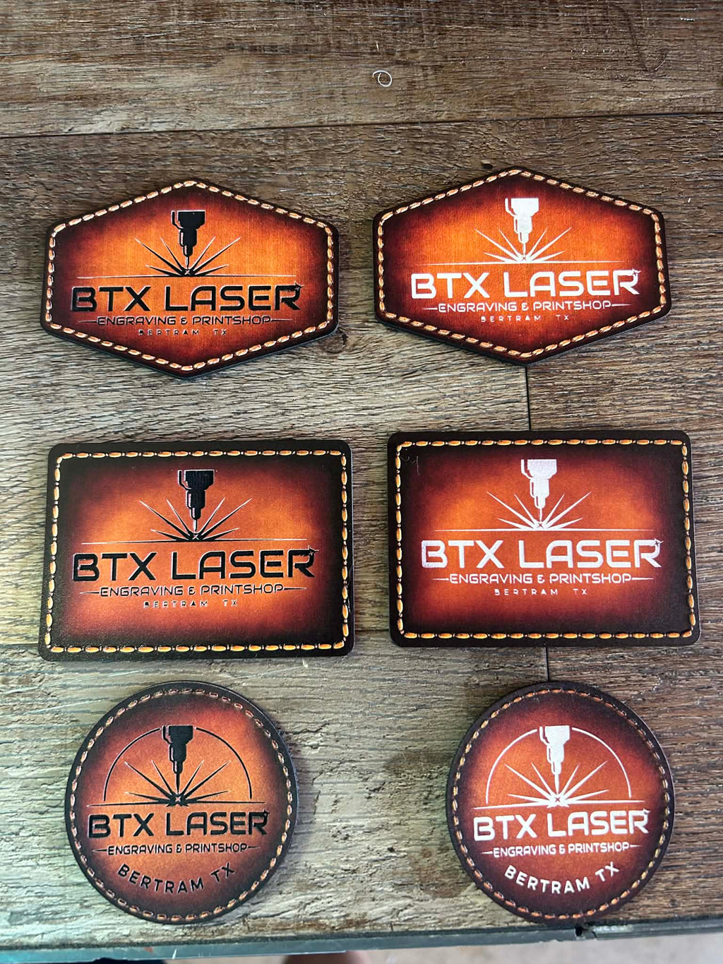 These premium UV-printed patches are made from white leatherette sourced from Lonestar Adhesive. With proper laser settings, you can achieve crisp white or deep black markings for a sharp, professional finish.